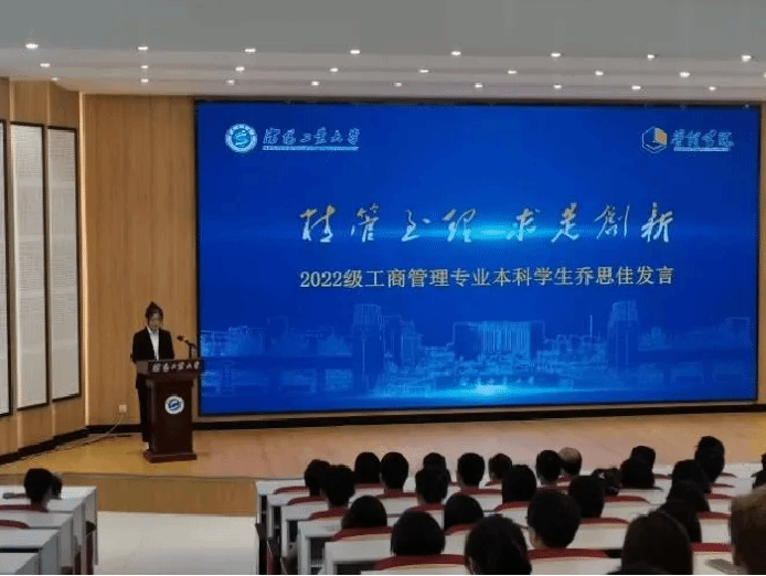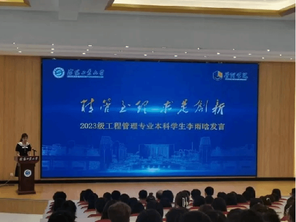 李雨晗作为新生代表表达了自己对学校、学院、老师们的感谢,并与同学们共勉,要努力成为一个更加独立、自律、勇敢的人,要拿出天生我材必有用的信心,拿出吹尽黄沙始到今的毅力,拿出直挂云帆济沧海的勇气去迎接大学的风雨洗礼,去感受老员工活的靓丽美好!