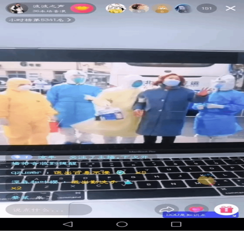 在直播的最后,主播号召直播间的老师同学以及其他观众朋友们在评论区为武汉加油,为奋战在一线的医护人员们加油,献出我们最为真挚的祝福。评论区瞬间成为了长长的祝福接力区,充满爱和正能量。